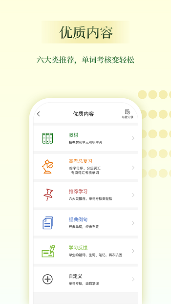 它是专为高中英语教师精心准备的教学辅助工具,通过与维词教师版的连通,设置实现协助老师布置作业,检查作业,完成日常单词学习的组织和管理,班级学情的统计和分析,可以有效的帮助老师减少工作量,增加教学效率,真正的成为老师英语教学的好帮手。