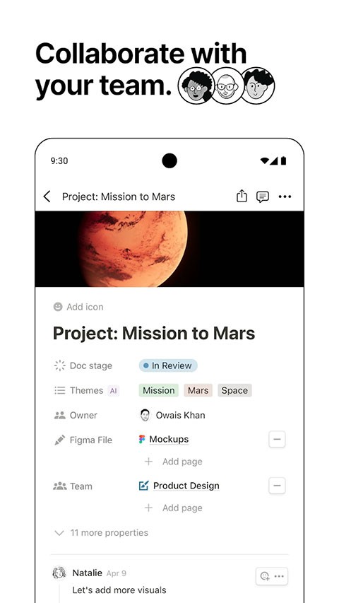 2、实时协作:轻松共享页面。添加评论和@队友。