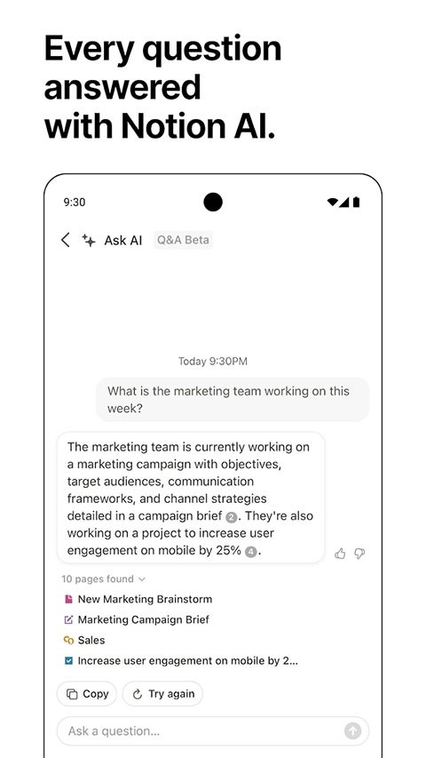 notion安卓版是一款功能十分强大的笔记软件,可为用户提供个人笔记的记录、管理、搜索以及团队工作所需的多人协作、项目管理、数据整理功能,满足用户多场景下的使用需求,而且创作的文章等内容可通过登录账户来实现多平台无缝过渡,让移动端的便携性得以最大发挥。并且内容支持的格式十分丰富,除了基础的图片、视频、音频、表单、todolist外还支持插入网站链接、代码、本地文件以及一系列的外部应用内容,甚至自行创建的笔记也可在其他笔记中自由引用,可以说是充分满足了用户的文本编辑需求。有需要的用户快来本站下载使用吧。