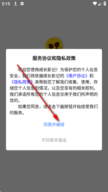 1、打开成长影记app,点击同意隐私政策。
