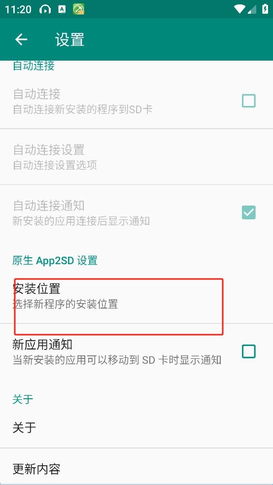 10.设置应用程序的默认安装位置;自动,内部或外部