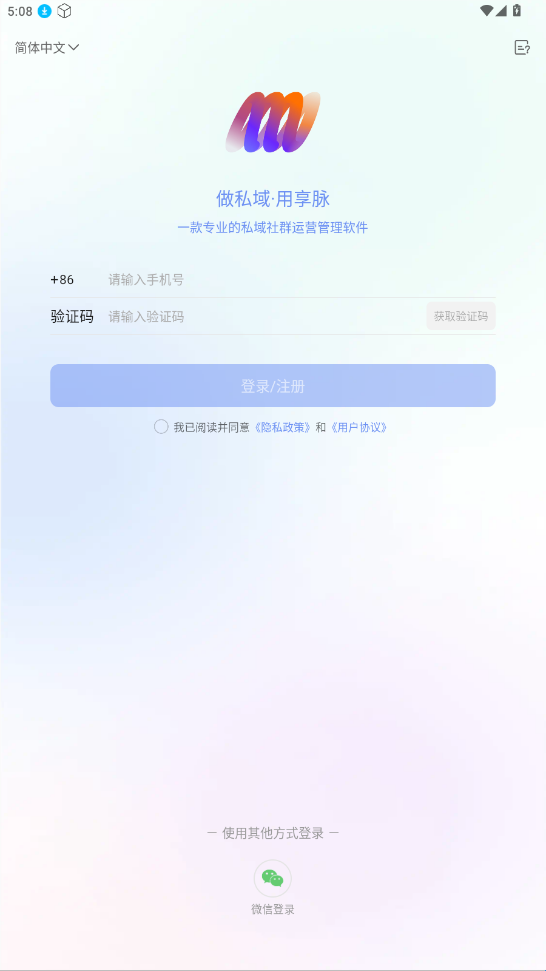 1、打开下载好的享脉app,用户可以选择注册新账户或使用已有账户登录。输入手机号或邮箱等注册信息后,设置密码并完善个人信息即可完成注册。