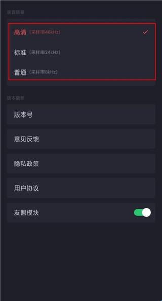 2、选择录音音质