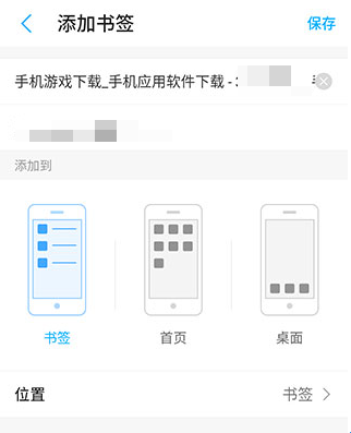 3、然后设置好书签名称和储存位置,点击右上角保存即可。