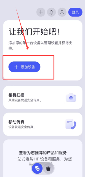 2、主页面支持添加新设备,通过扫描或手动输入完成硬件绑定与联网配置。