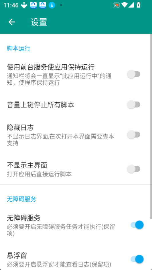 在设置界面中提供丰富功能选项,支持开启 “音量上键停止所有脚本”功能,按音量上键即可快速终止正在运行的脚本,操作便捷;可开启悬浮窗功能,让 APP操作入口悬浮在其他应用之上,无需频繁切换应用;还能开启隐藏日志功能,减少界面干扰,让使用过程更简洁。