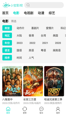 小宝影院是一款非常好用的手机影音播放软件,汇集海量优质影视资源,画质高清蓝光,播放流畅,让你可以自由选择自己想要看的剧集,全部都是免费提供给用户观看的,全程也没有任何广告和弹窗打扰,为你提供一个纯净舒适的观影环境,喜欢的小伙伴们快来下载试试吧!