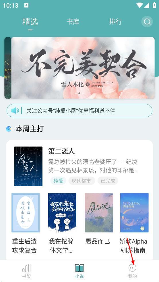 2、进入精选页面,点击右下角我的选项,进入个人中心页面。