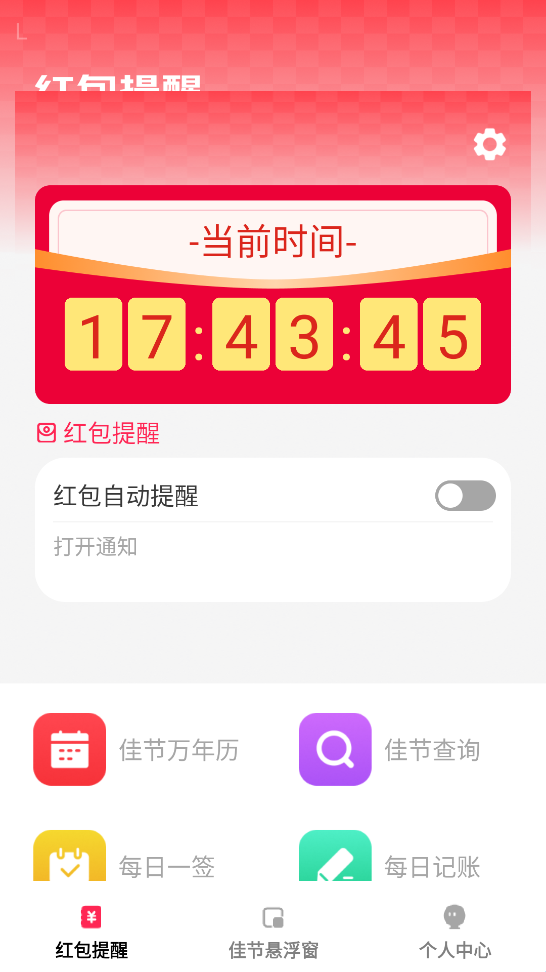 2、在首页可以手动设置红包提醒;