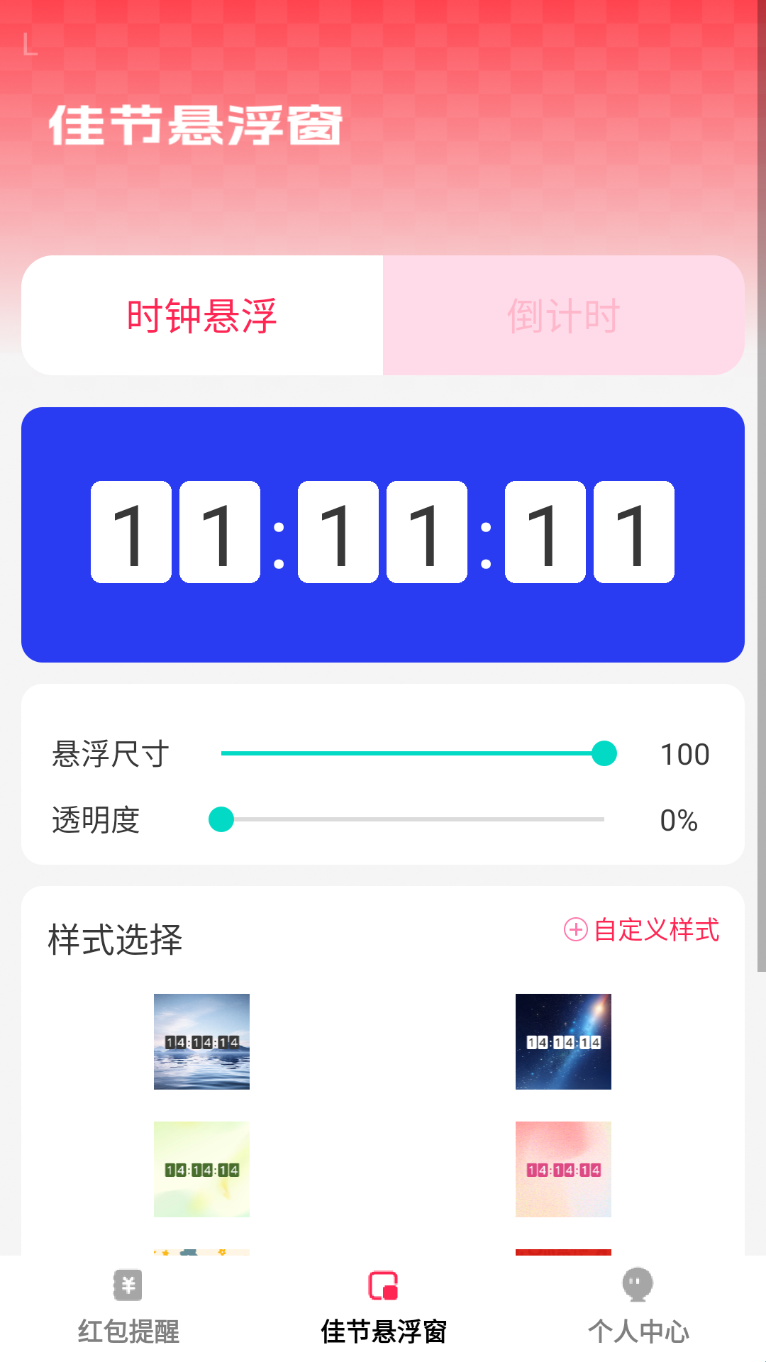 佳节红包封是一款专为节日和喜庆场合设计的实用应用,致力于帮助您更好地管理红包和重要日程。它的“红包提醒”功能可以自动提醒您发送和领取红包,配合万年历、记账和良辰吉日的查询,让您的节日安排更加周全。此外,佳节红包封还提供时钟和倒计时的悬浮窗功能,方便您随时掌握时间,确保不错过每一个重要时刻。