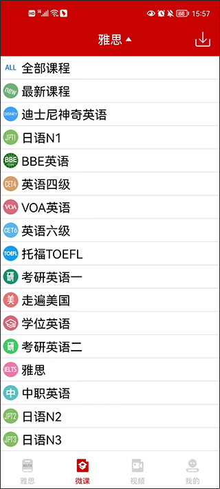 2、用户还可以在这里观看微课视频,由专业的导师提供了微课视频教程,包含了如何写作文、练习口语、背单词等等。