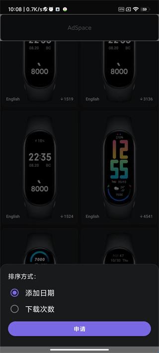 2、选择各种表盘,按下载次数或添加日期对表盘进行排序。