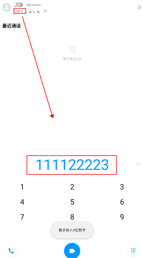 2、输入对方设备号,注意,设备号是9位,不是电话号码;