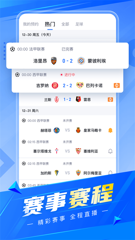 1、软件提供实时高清直播,保证用户能够观看到最新、最清晰的赛事画面。