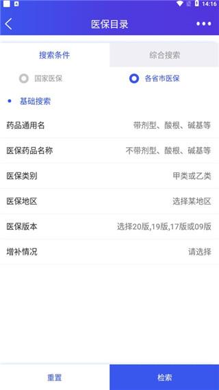 4、点击进入医保目录,用户可以检索国家及各省市的药品医保情况。
