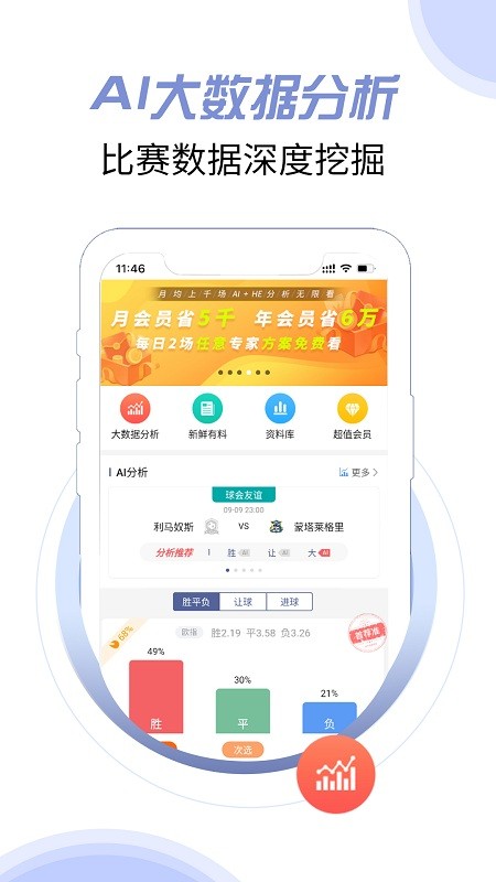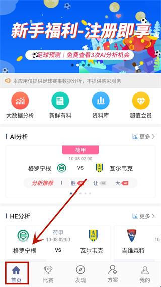 1、【新手福利】注册即可免费查看任意3场AI分析数据