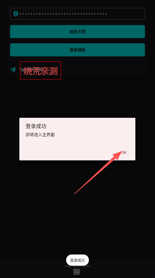 如图复制卡密,点击“OK”
