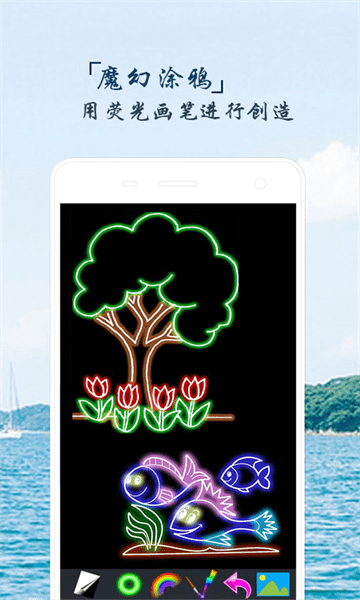 4、通过多彩荧光画笔,画出炫酷的图案,还可以对相片进行涂鸦,乐在其中。