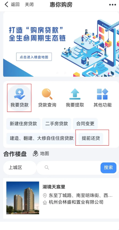 1、借款人登录浙里办APP,首页搜索“惠你购房”,点击进入办事页面