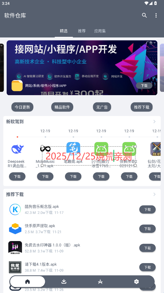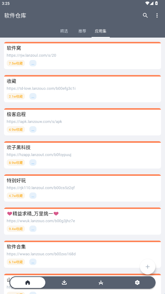 软件仓库是一款全网最好的聚合app。烧荒小编亲测可用!为广大用户提供免费软件库合集软件资料,软件内所提供的资源分类也是非常详细的,各种个人、破解、绿色、去广告版本都可以快速获取,内部资源实时更新,有需要的小伙伴们快来下载体验吧!
