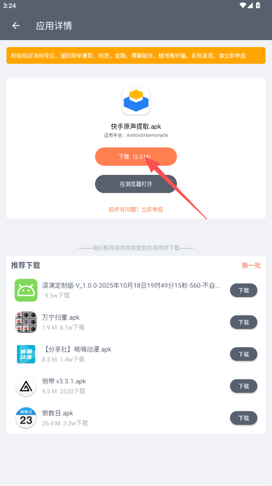 2、我们以“快手原生提取apk”为例点击下载即可