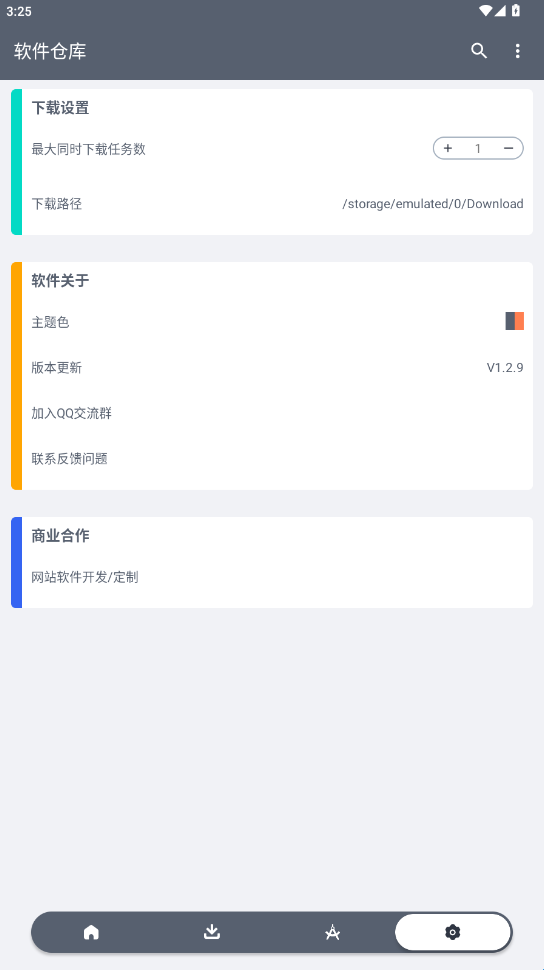 3、在设置界面还可以调整下载路径、和软件主题色喔!