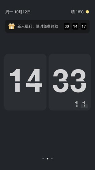 1、打开翻页桌面时钟app,进入应用主界面,可看到当前时间、天气和日期信息,点击屏幕。
