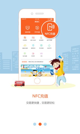 用户可以通过这个软件来给公交卡进行充值。还能在线查询卡里的余额,一键轻松完成各种功能。软件仅支持带nfc功能的手机,用户需要注意。由城市一卡通(天津)城市卡有限公司倾力打造,美伽汇手机客户端为美伽汇平台官方推出的手机客户端。您可以通过美伽汇手机客户端进行城市卡自助充值、城市卡实名制登记、实名制登记结果查询、城通卡余额查询等业务。