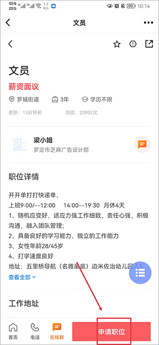 3、找到合适职位后,点击申请职位即可投简历