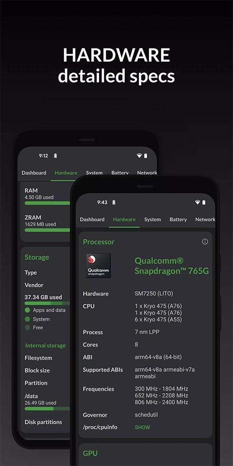 一款专为Android设备设计的硬件和操作系统信息检测查看工具。app能够为用户提供设备最详尽的中央处理单元(CPU)和系统级芯片(SOC)的信息,包括核心数量、时钟频率、处理器版本及架构等详细参数。它还能显示设备的内存、存储、电池、摄像头、网络使用状况及传感器数据等硬件和系统信息。这些信息对于用户了解设备的性能和配置非常有帮助。