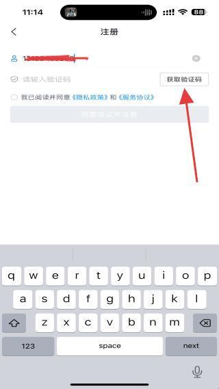 2、在注册页面,输入需要注册的手机号,并点击获取验证码。