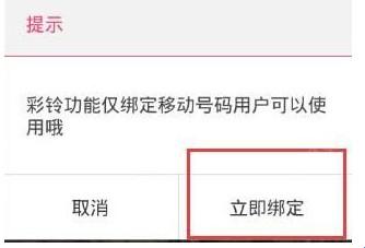 4、这里会提示彩铃功能仅绑定移动号码用户可以使用,点击立即绑定,然后绑定你的移动号码即可。