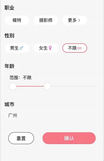 4、如果你是要找艺人,点击“筛选”标志的图标,进入到筛选列表,根据自己的要求进行选择,如图;