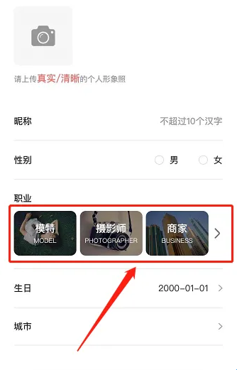 2、进入注册界面后,完善对应信息,职业栏中如果没有自己想要的职业,可点击小三角进入更多职业选择,如图;