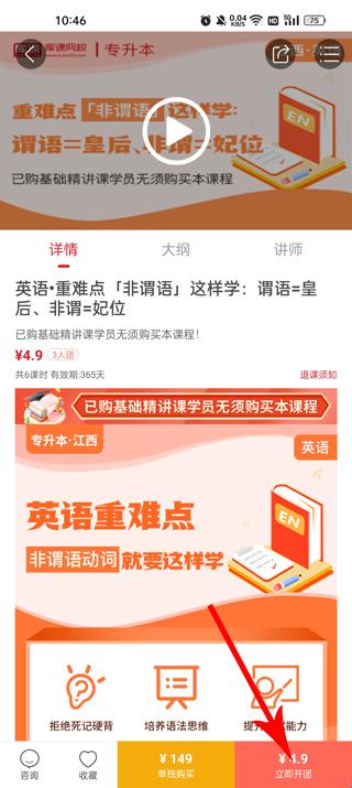 3、你可以选择两种购买方式,建议选择立即开团购买,这样会更加便宜;
