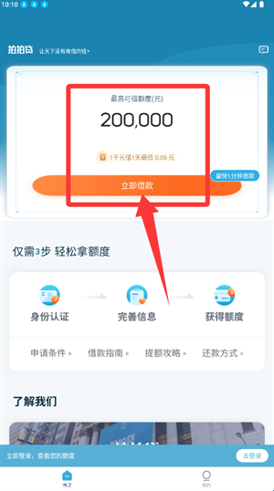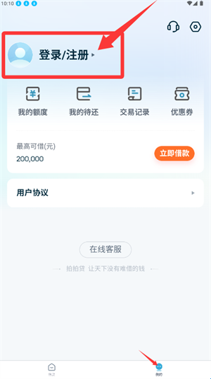 3、在账户页面点击借款入口,便可进入后续的额度申办流程。