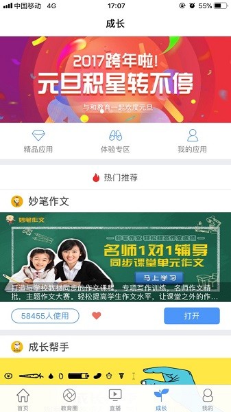 应用中心精选了各类教育应用,包括安全定位.在线答疑.同步练习等。和教育客户端在手,一站登录,直接可以使用各类应用。