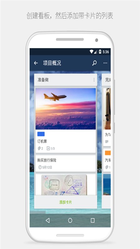2、在看板内新建列表,例如待办、进行中、已完成,然后为每个任务创建卡片并拖动到对应列表。