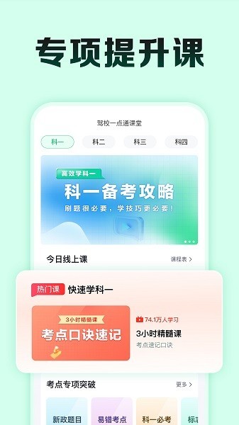 驾校一点通极速版是一款专门驾校学员打造的学习备考驾照的软件,从科目一到科目四的实操和笔试学习资料全部都在这里,还会根据政策的改编更新学习内容,帮助学员提升通过的概率,用户反复刷题可以了解自己的不足之处,查漏补缺。用户可以观看实操视频练习,软件根据您历史的答题情况为你量身定制学习计划,模拟考试练习,让你提前适应考试的氛围,有需要的用户可以下载试试看!