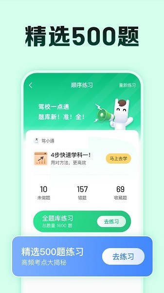 驾校一点通极速版是款专门为驾考学员们打造的学习软件。它可以为用户提供科目一到科目四的全部备考资料,让学员们可以在考试前进行重复的复习学习,有效的提高考试的通过率。软件界面更加简洁美观,安装包体积小巧,运行起来不占内存,而且去除了内置广告,致力于带给玩家极速的使用体验。除此之外,这款软件功能也十分非常全面,提供的科目一、科目四试题非常的全面,覆盖了各省市的常考题目,满足广大教考学员的学习需求,让您能够轻松处理各种易错题、难题,帮助用户轻松考过。