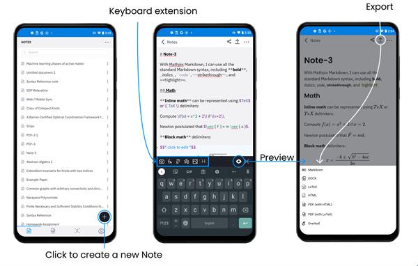 数字化打印和手写的PDF文件,这些文件可以转换为可编辑的笔记,或导出为其他格式,如LaTeX,DOCX,HTML,Markdown等。