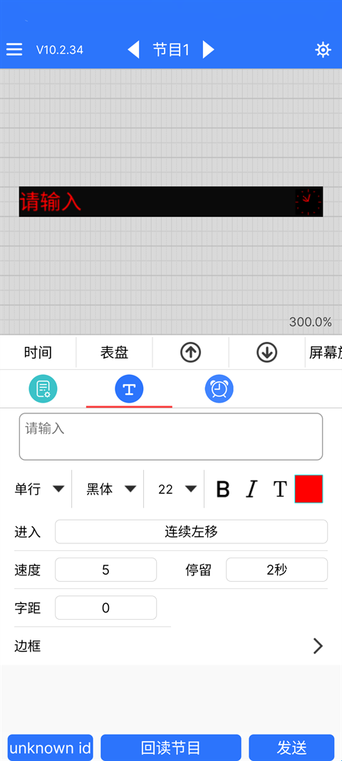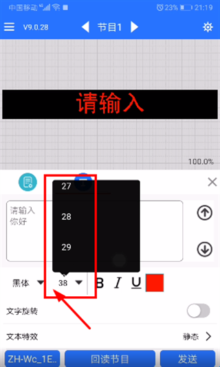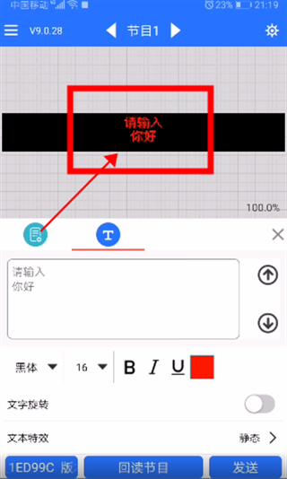 1、打开LED魔宝App新建一个节目,并选择文本中的文本特效将其设置为静态