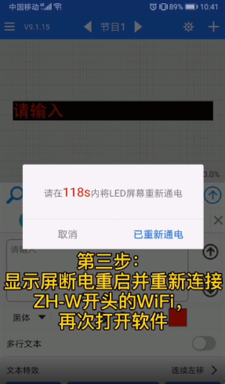 3、显示屏断电重启并重新连接ZH-W开头的WIFI信号,再次打开软件