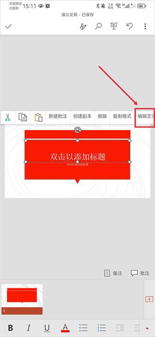 3、创建后先点击一下演示文稿,然后在点击编辑文字。