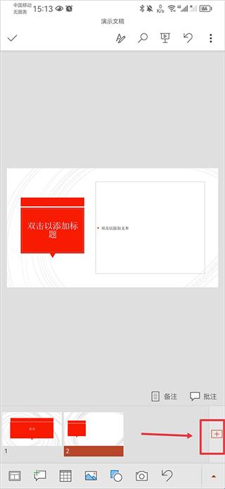 在下方文稿演示栏中点击右边的+号按钮即可增加一个空白页面。