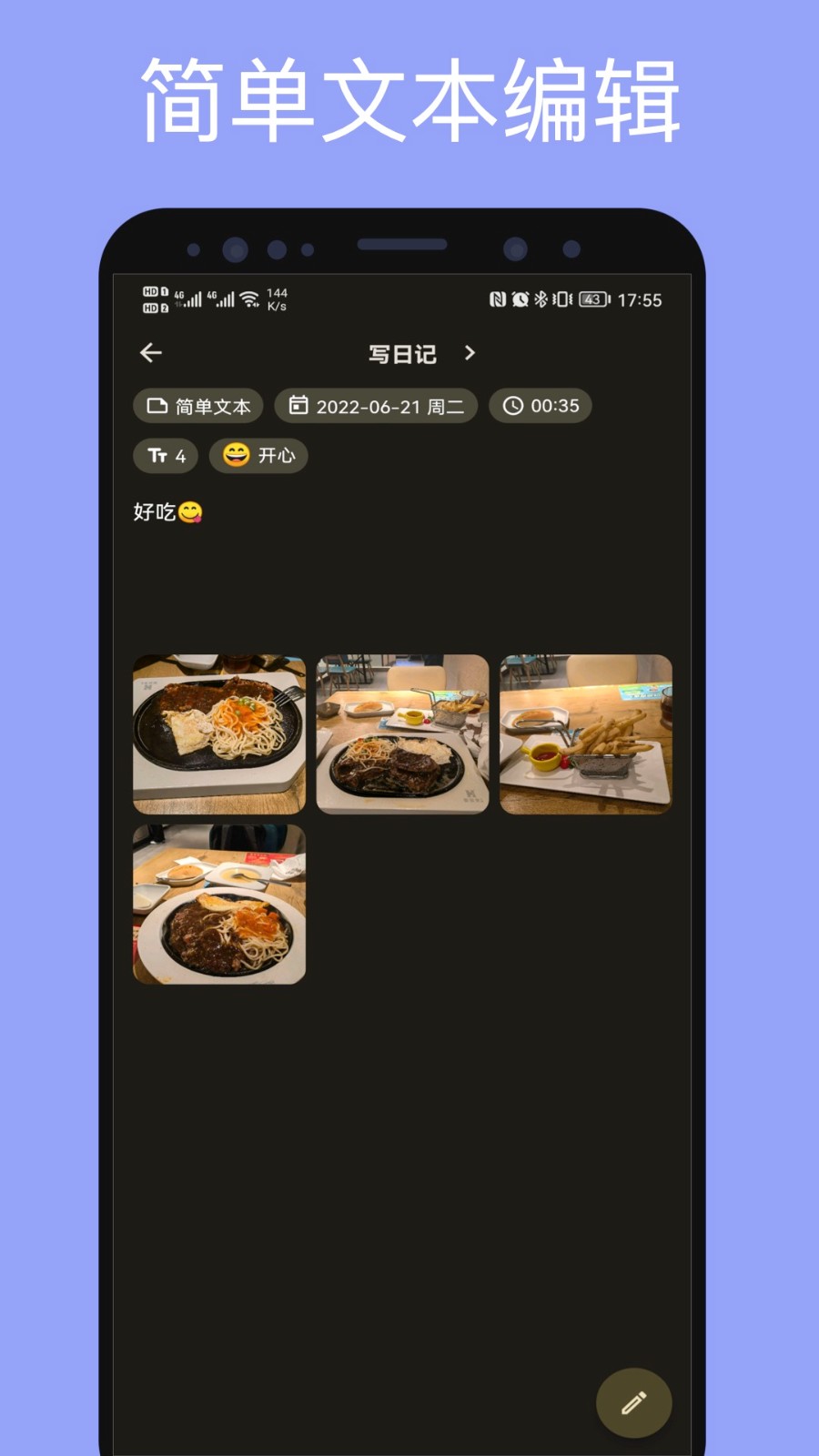 1、离线编辑:即使没有网络,用户依旧可以随时记录和修改日记。