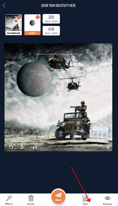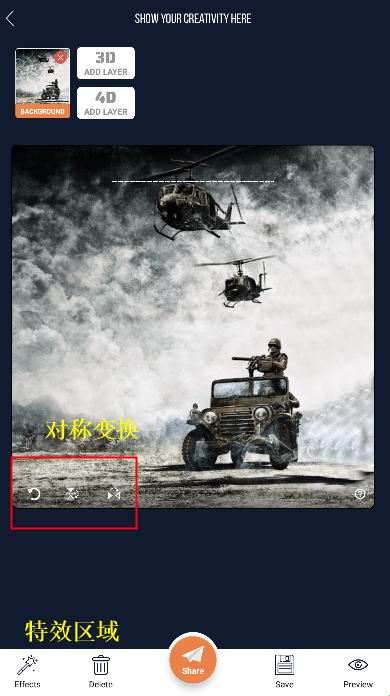 4、点击上方3d或者4d图标可以添加素材,你可以将多个素材进行融合,制作出新的壁纸。