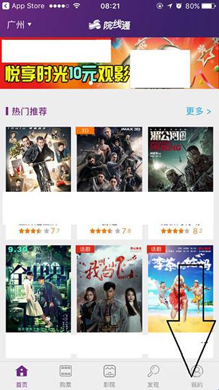 1、在院线通主界面,点击右下角的【我的】。