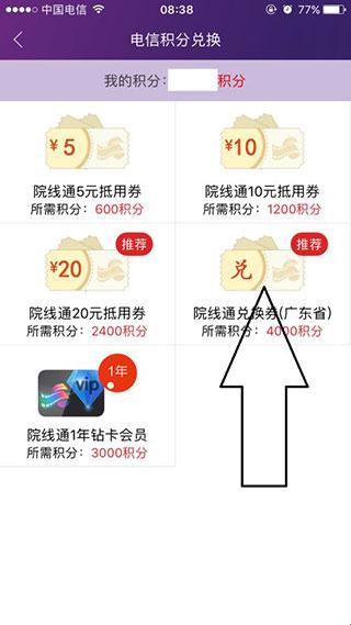 2、然后点击最下面的【电信积分换购】。