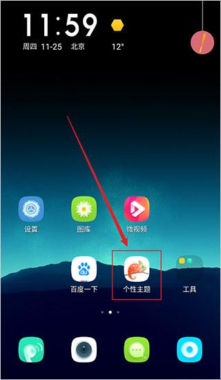 1、下载完软件后,点击桌面上的个性主题;